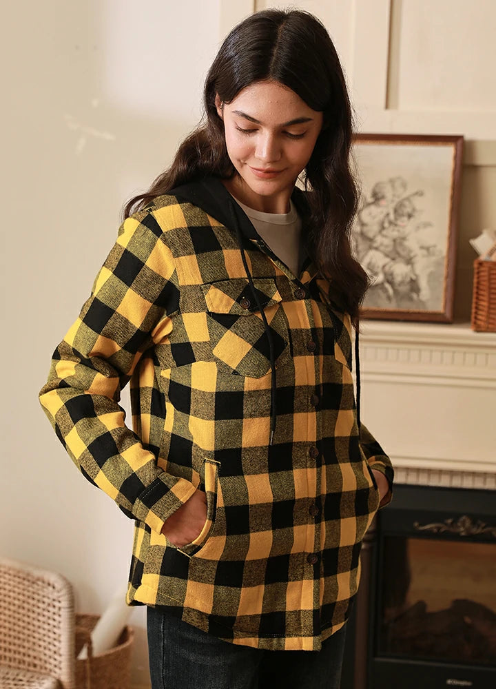 Women's Matching Family Yellow Quilted Lined Flannel Hoodie