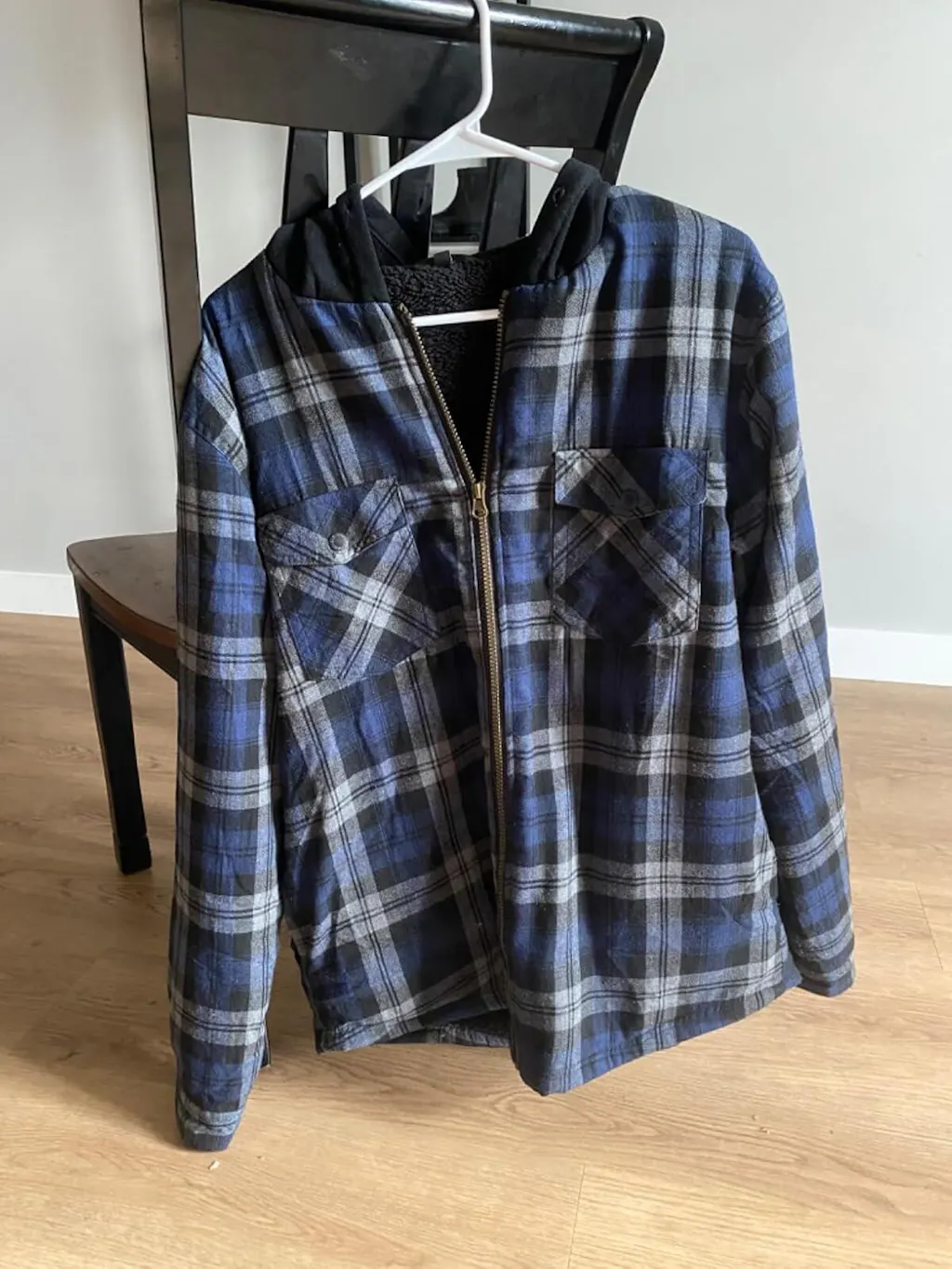 Men's Sherpa Lined Flannel Shirt Jacket with Hood,Plaid Shirt-Jac - Khaki Navy / S is backordered and will ship as soon as it is back in stock.