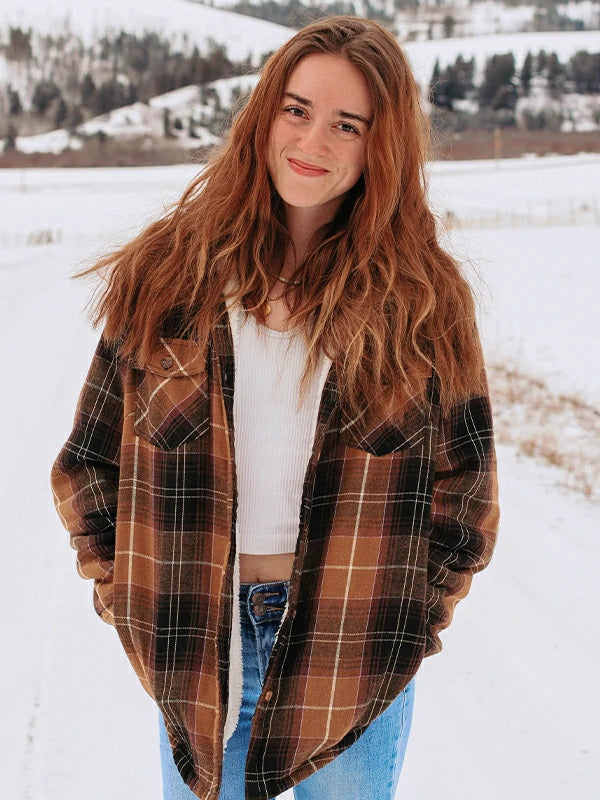 Women's Flannel Shirt Jacket,Sherpa-Lined Plaid