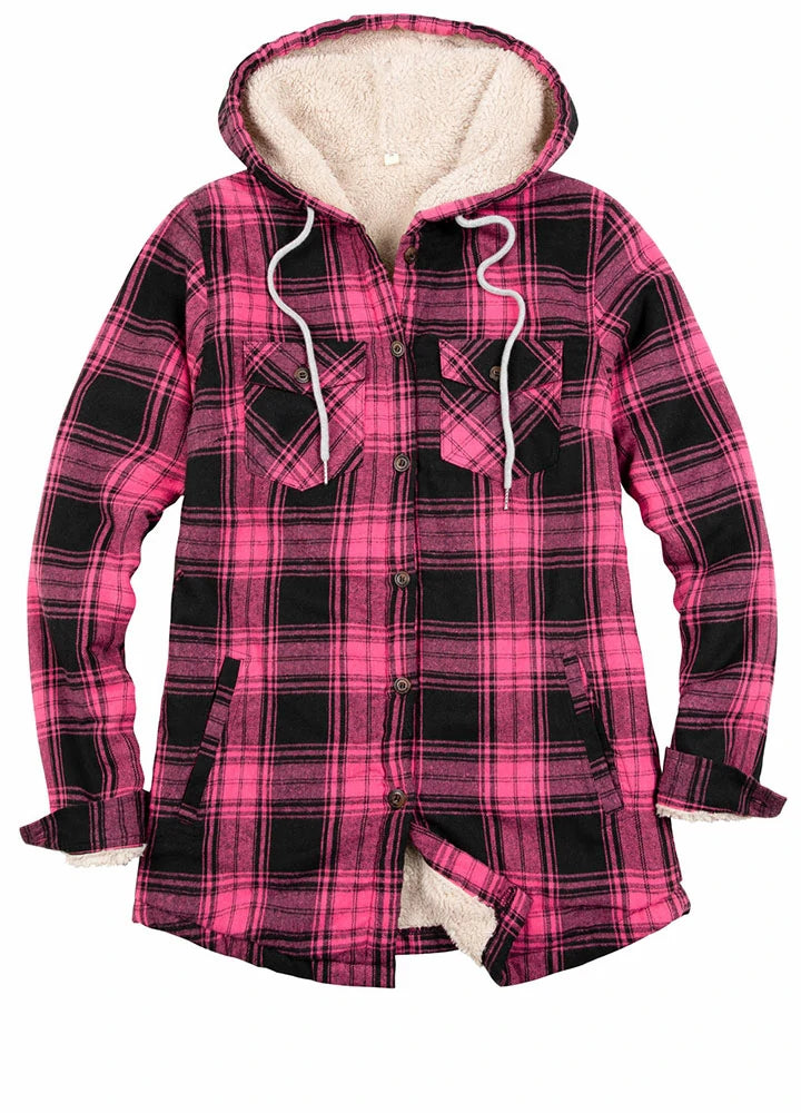 This Women's Matching Family Sherpa Lined Pink Flannel Jacket with Hood will have you looking snug as a bug in a rug! Whether you're getting comfy around the campfire or out on the town, keep your style cozy and chic with this ultra-cute flannel!