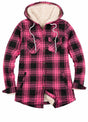 Women's Matching Family Sherpa Lined Pink Flannel Jacket with Hood