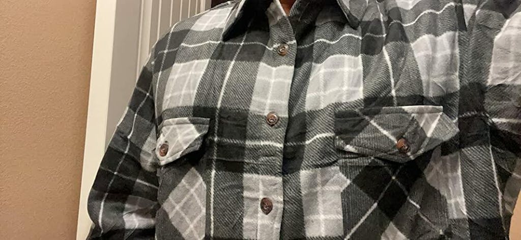 100% polyester fleece & sherpa-bonded lining keep you warm and comfy! This rugged Sherpa lined shacket offers two chest flaps and two seam pockets for storage, and buttoned cuffs for a classic look. Perfect for layering a tee/sweater in cooler weather or for home, work, or any outdoor activity with this plaid flannel shirt jacket. A unique blend of performance & style - be ready for any weather! Ideal Holiday gift.