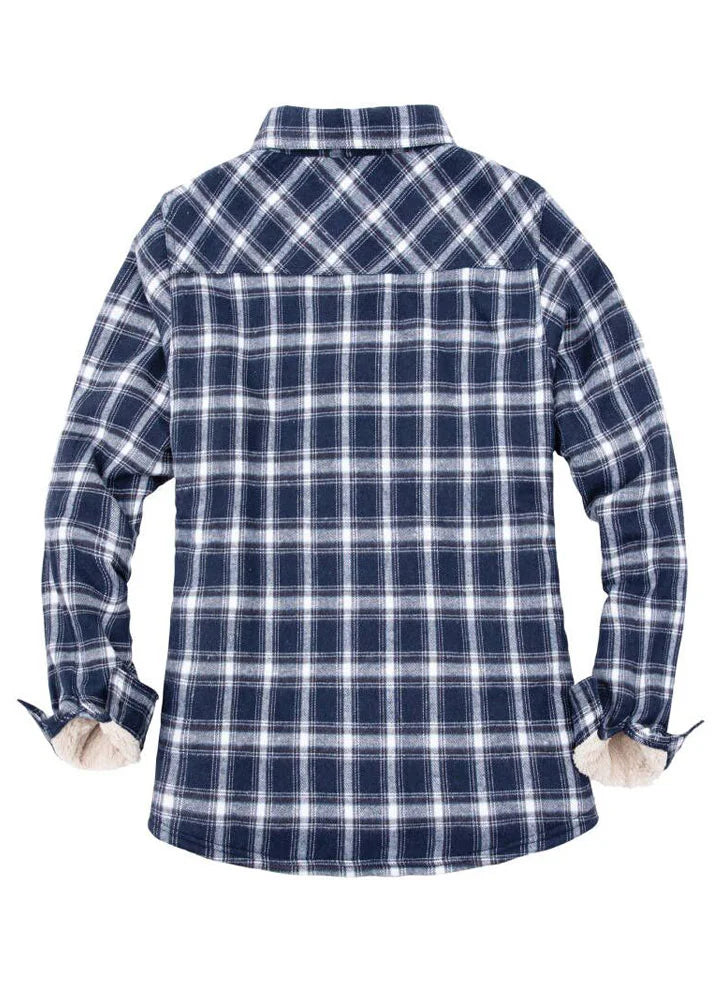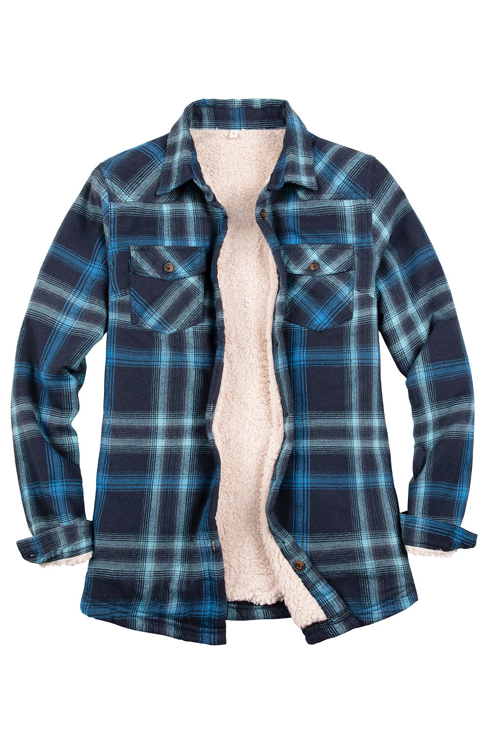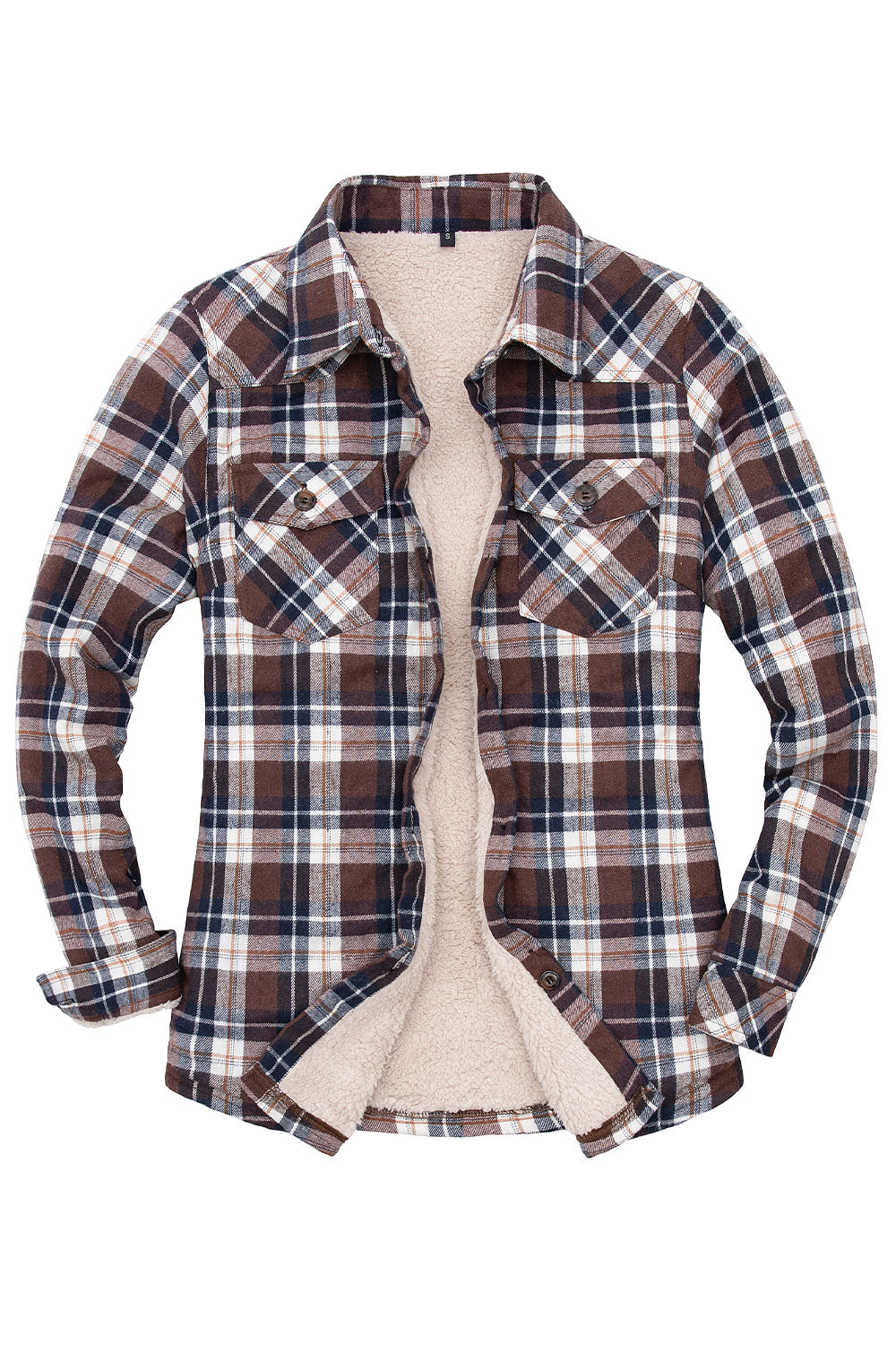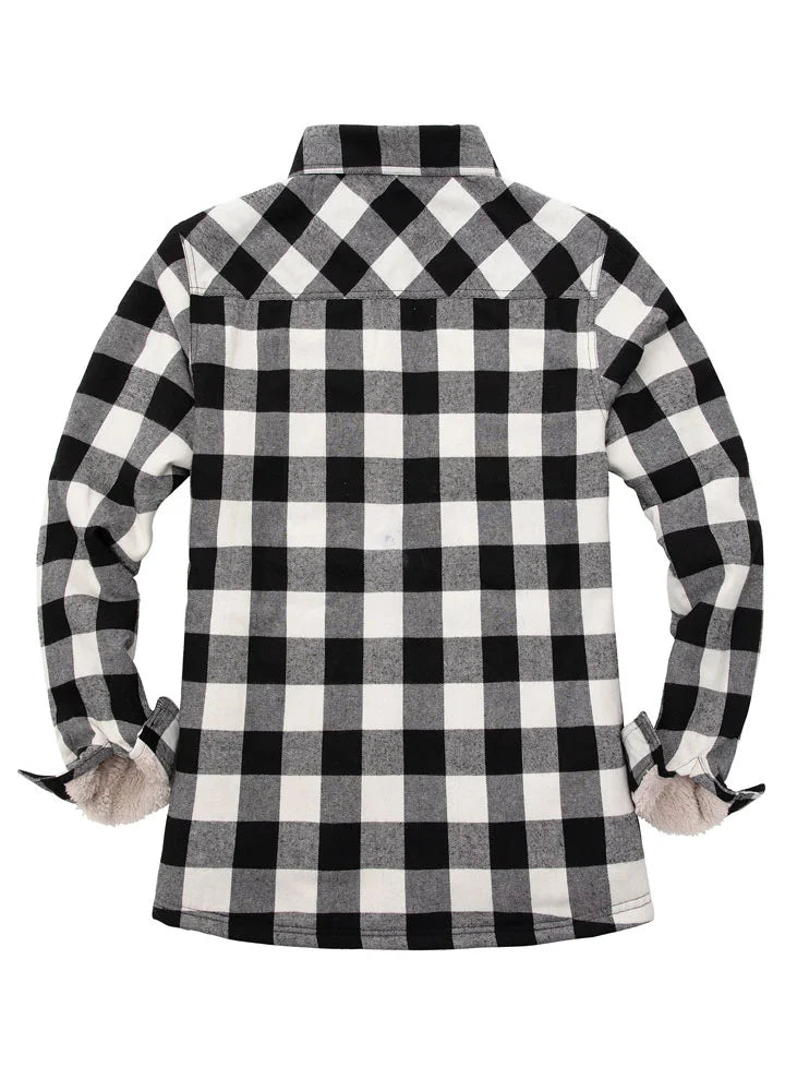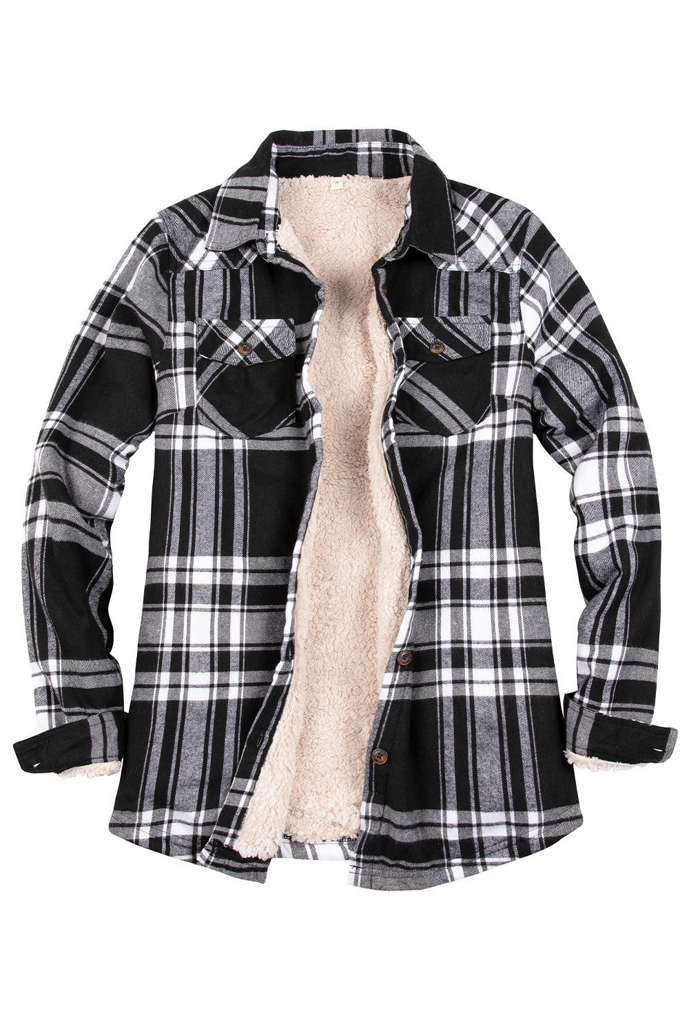 Stay warm and stylish with this women's flannel with sherpa lining! This women's flannel shirt jackets feature front button flap and side seam pockets for convenience and a pleated design for a better fit. The sherpa fleece lining extends throughout the flannel jacket, including the sleeves. It makes a great gift for loved ones!