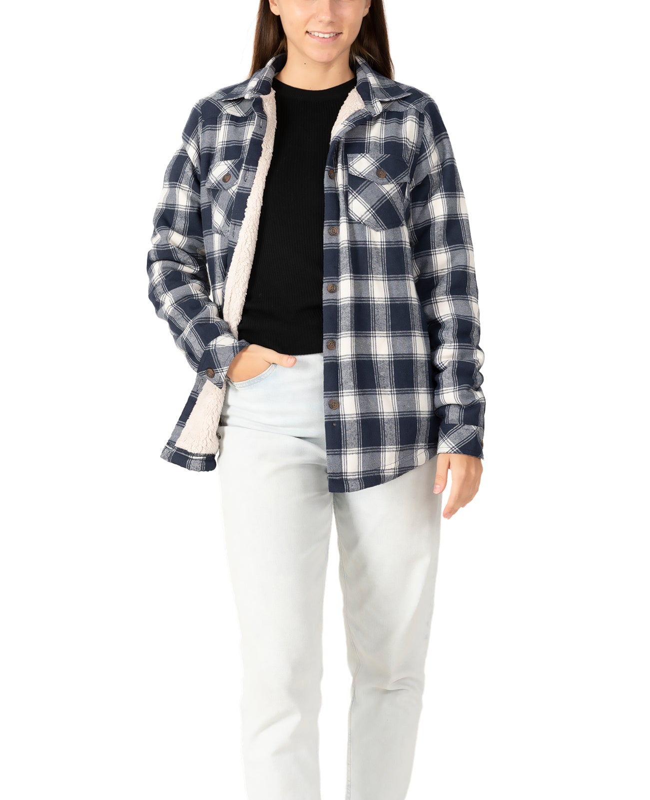 Women's Flannel Shirt Jacket,Sherpa-Lined Plaid