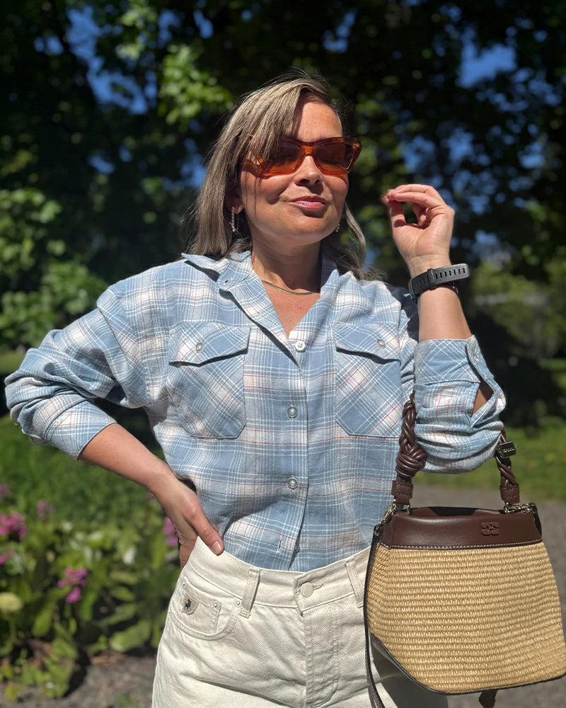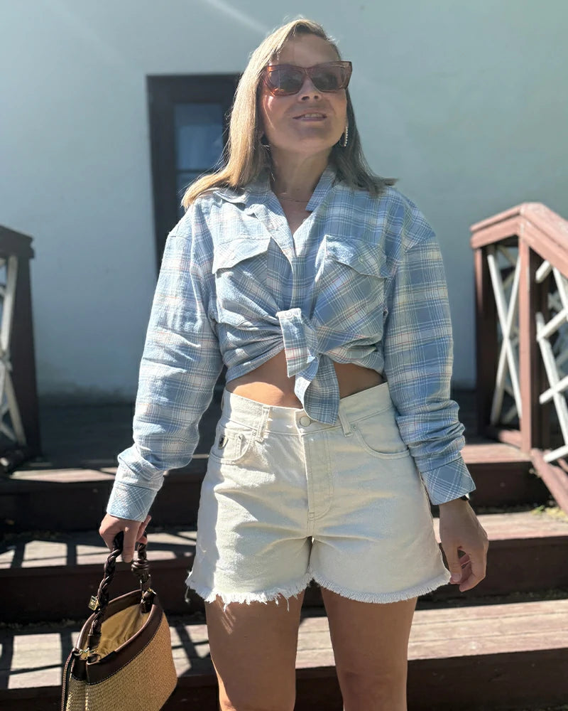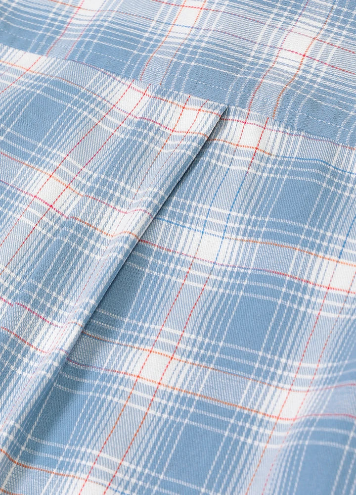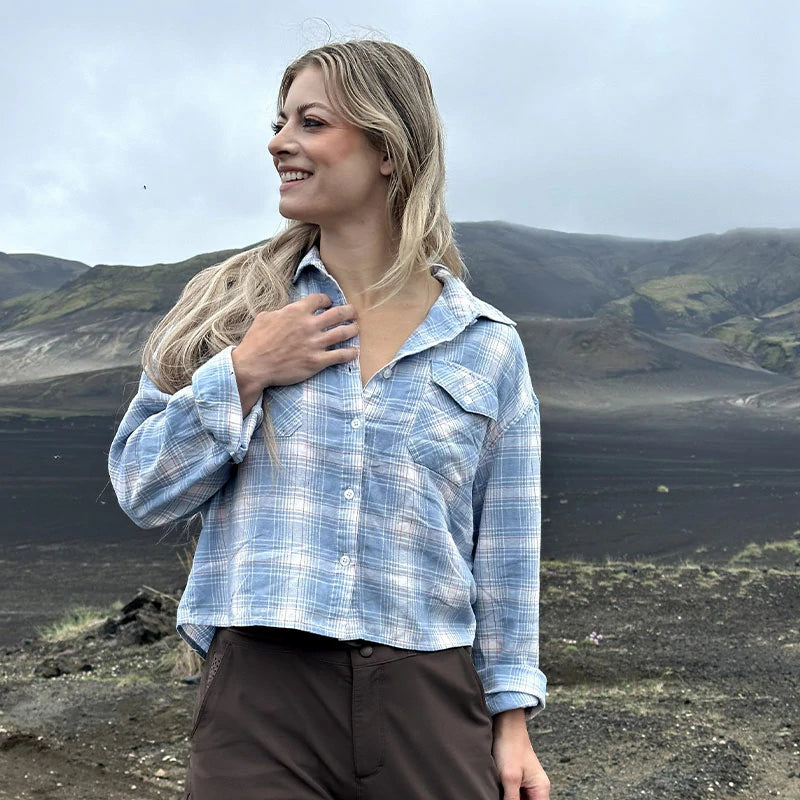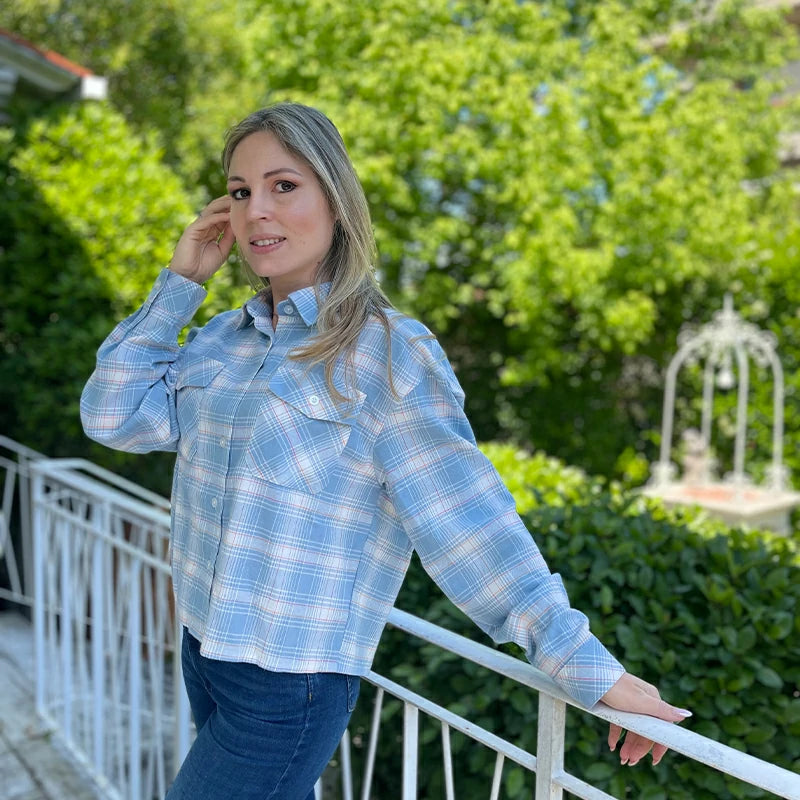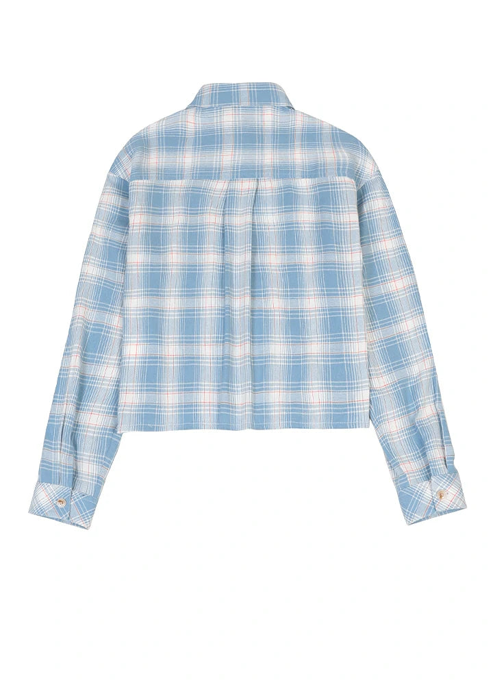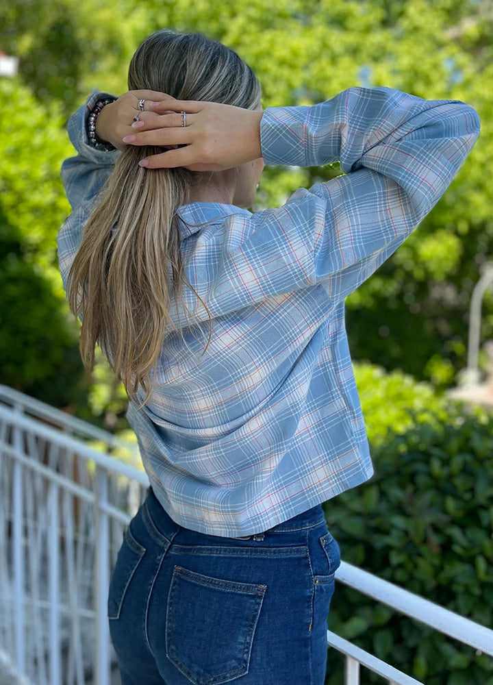 Women's Breathable Flannel Cropped Plaid Shirt - Sky Blue / S está agotado y se enviará tan pronto como vuelva a estar disponible.