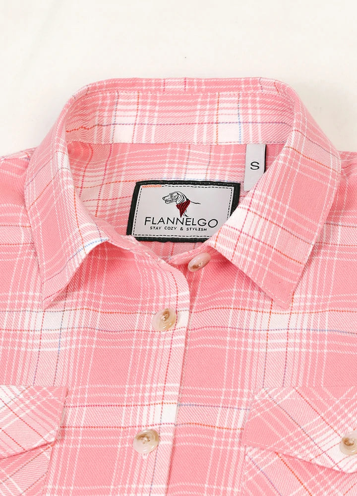 Elevate your wardrobe with our women's breathable flannel cropped plaid shirt. This cropped shirt is made from 100% cotton for a soft finish and low shrinkage. Its breathability and softness make it suitable for any occasion and easy to match with your favorite outfits. This short plaid shirt features long sleeves, button cuffs, lapels and two front pockets with plenty of space for your stuff, making it both stylish and functional. Machine washable for easy care.