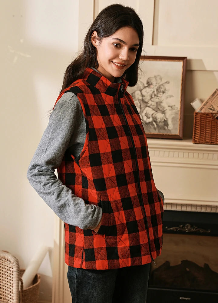 Add a layer of warmth to your outfit with our Women's Quilted Plaid Flannel Vest. Made of 100% cotton, this vest features a quilted lining in the body for added comfort. The two zipper front closures and multiple pockets provide convenience and versatility. Machine washable for easy care. Perfect for pairing with any shirt, jeans, or jacket. Stay cozy and stylish this season.