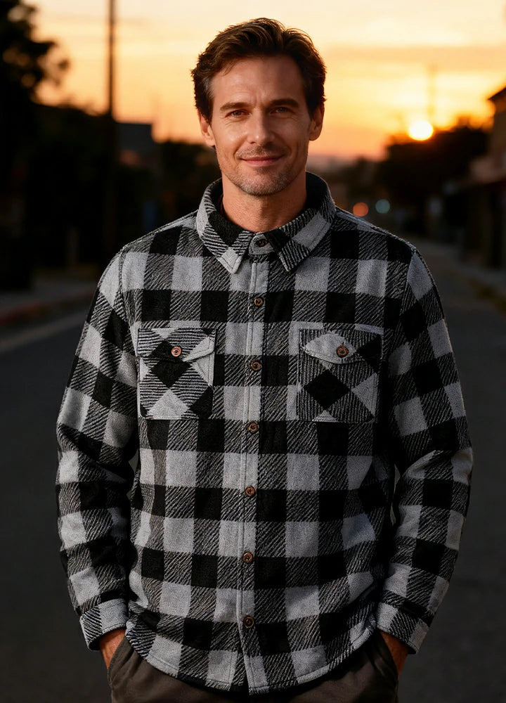 Men's Warm Sherpa Lined Plaid Shirt Jacket (Sherpa Lined Throughout)