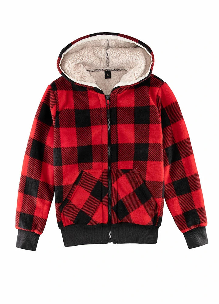 Kids Matching Family Sherpa Lined Red Plaid Sweatshirt Jacket
