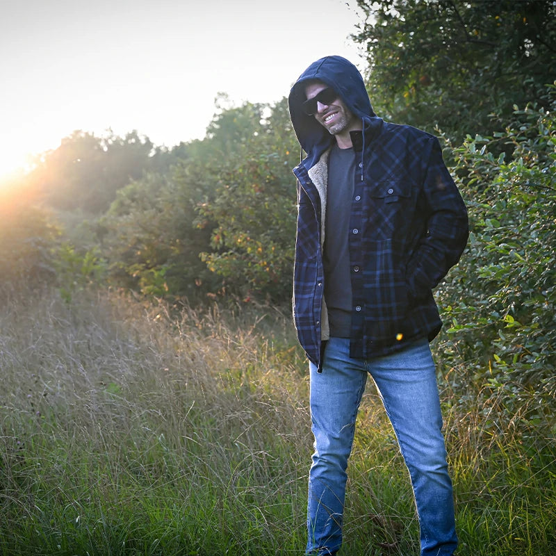Men's Sherpa Lined Water Repellent Flannel Jacket with Hood,100% Cotton