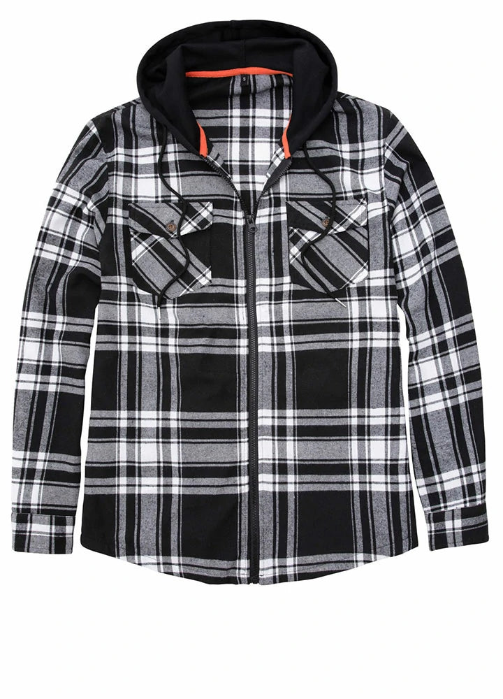 Men's Full Zip Up Hoodie Plaid Flannel Shirt Jacket with Hand Pockets