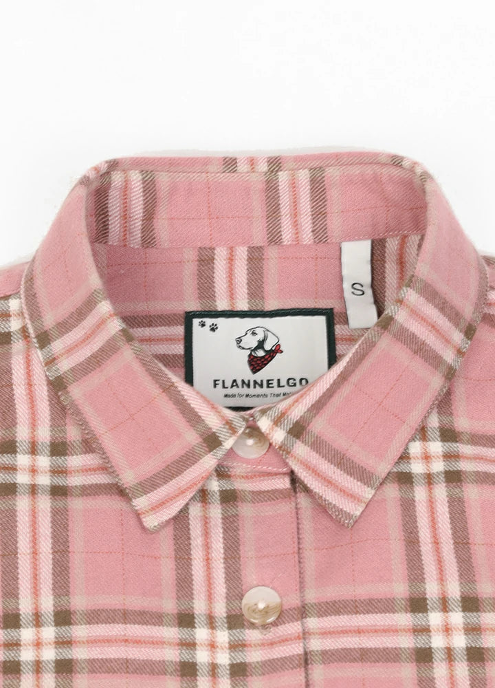 Zacht flanellen damesoverhemd met opgerolde mouwen - Mokka / S is nabesteld en wordt verzonden zodra het weer op voorraad is.