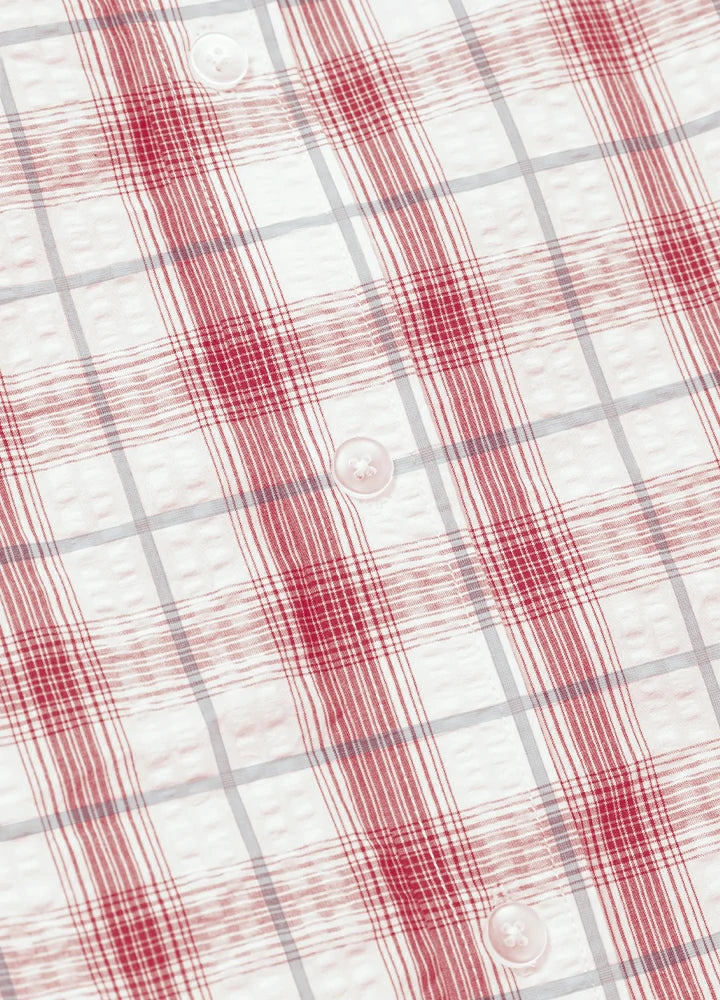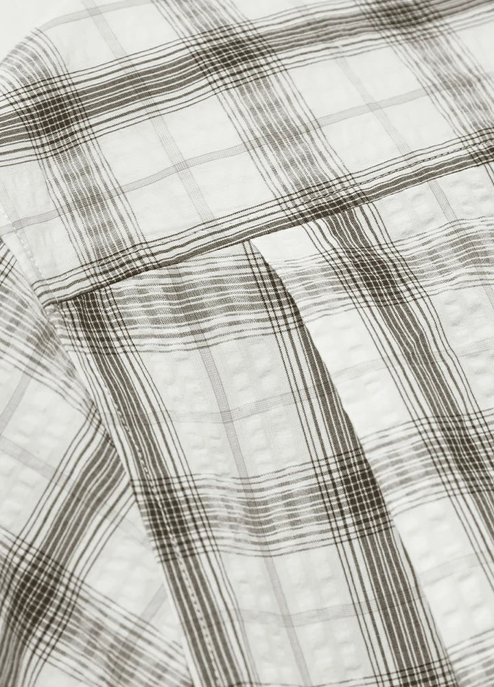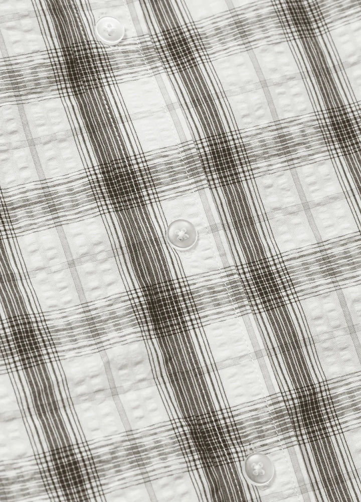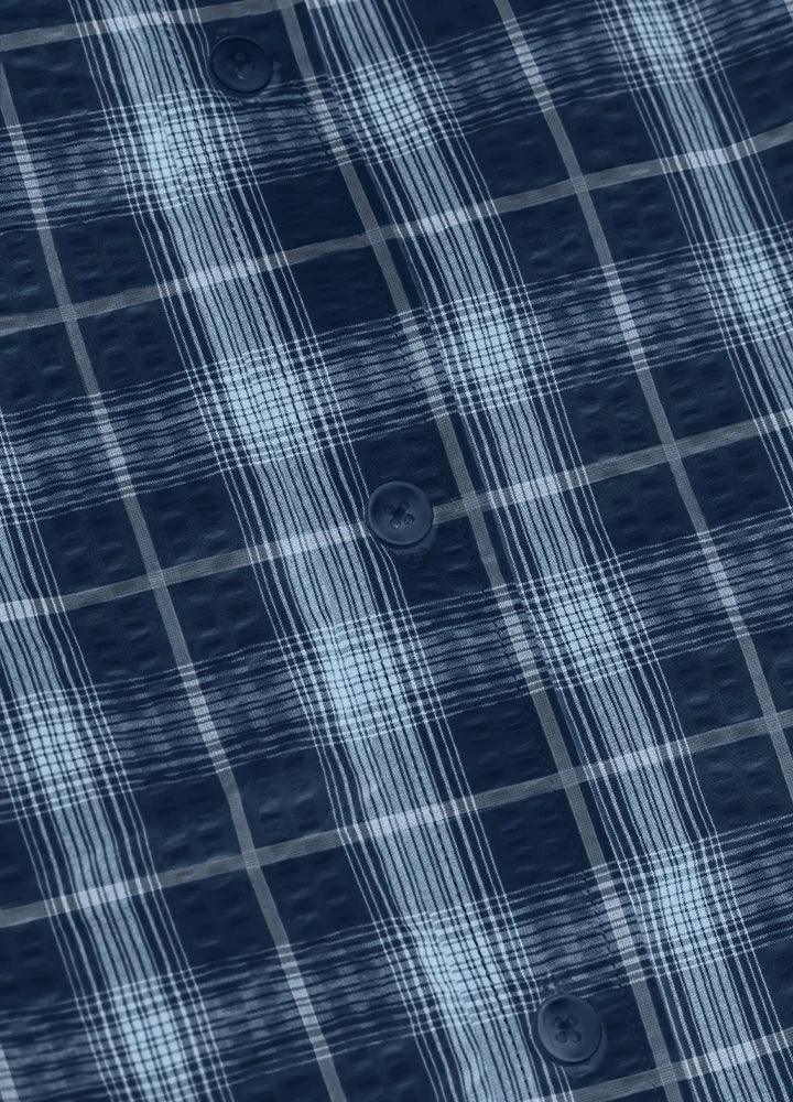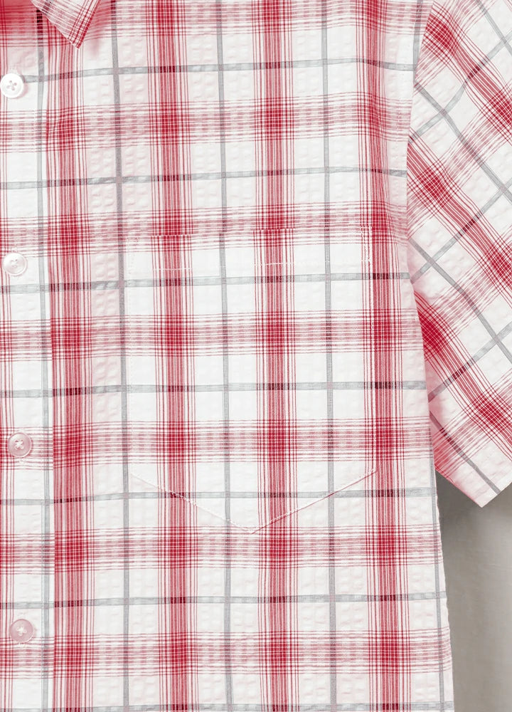 The design philosophy behind this short-sleeve seersucker shirt stems from a pursuit of that quintessential "breathable" sensation of summer. Crafted from ultra-lightweight 3.3 oz, 100% pure cotton fabric, it utilizes a unique 3D seersucker texture to create microscopic air circulation channels between the fabric and the skin, ensuring exceptional moisture-wicking performance and a consistently dry, cool feel. Its Regular fit—combined with a classic workwear-style single chest pocket and a body-flattering shirttail hem—maintains a visually crisp silhouette. Machine washable.