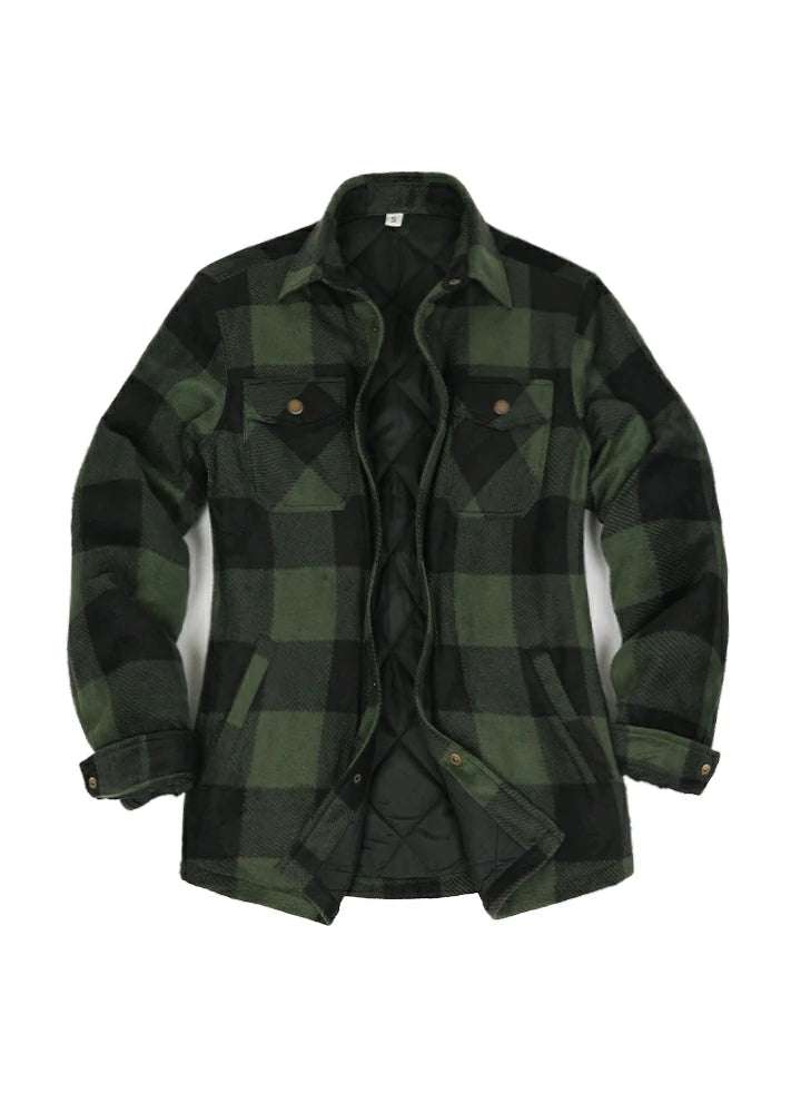 Stay comfortable through changing seasons with this versatile shacket. Soft touch fabric and quilted lining for extra warmth, it's perfect for layering. Featuring snap-button front and cuffs, chest pockets, and cozy hand pockets, it combines functionality and style. Machine washable for easy care.